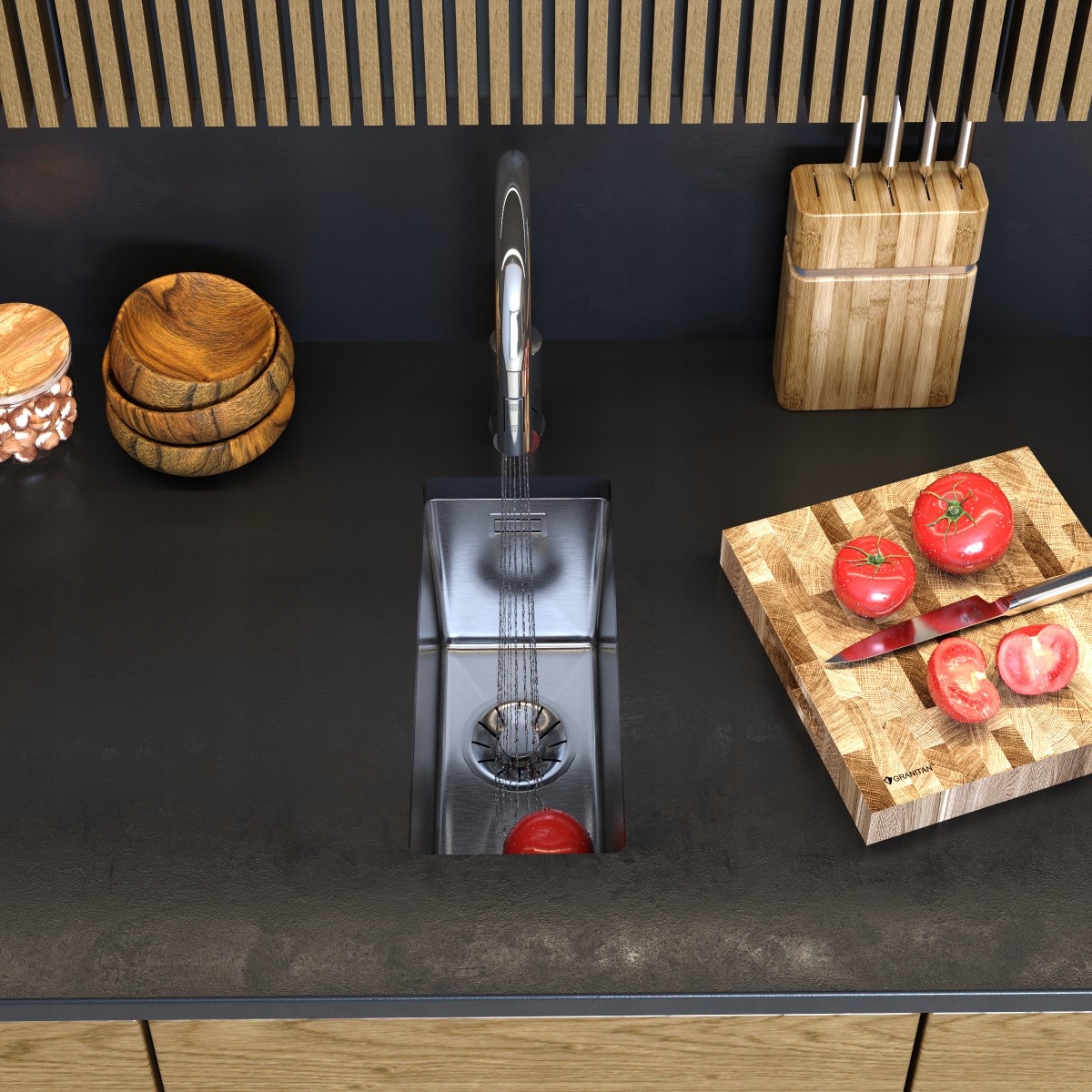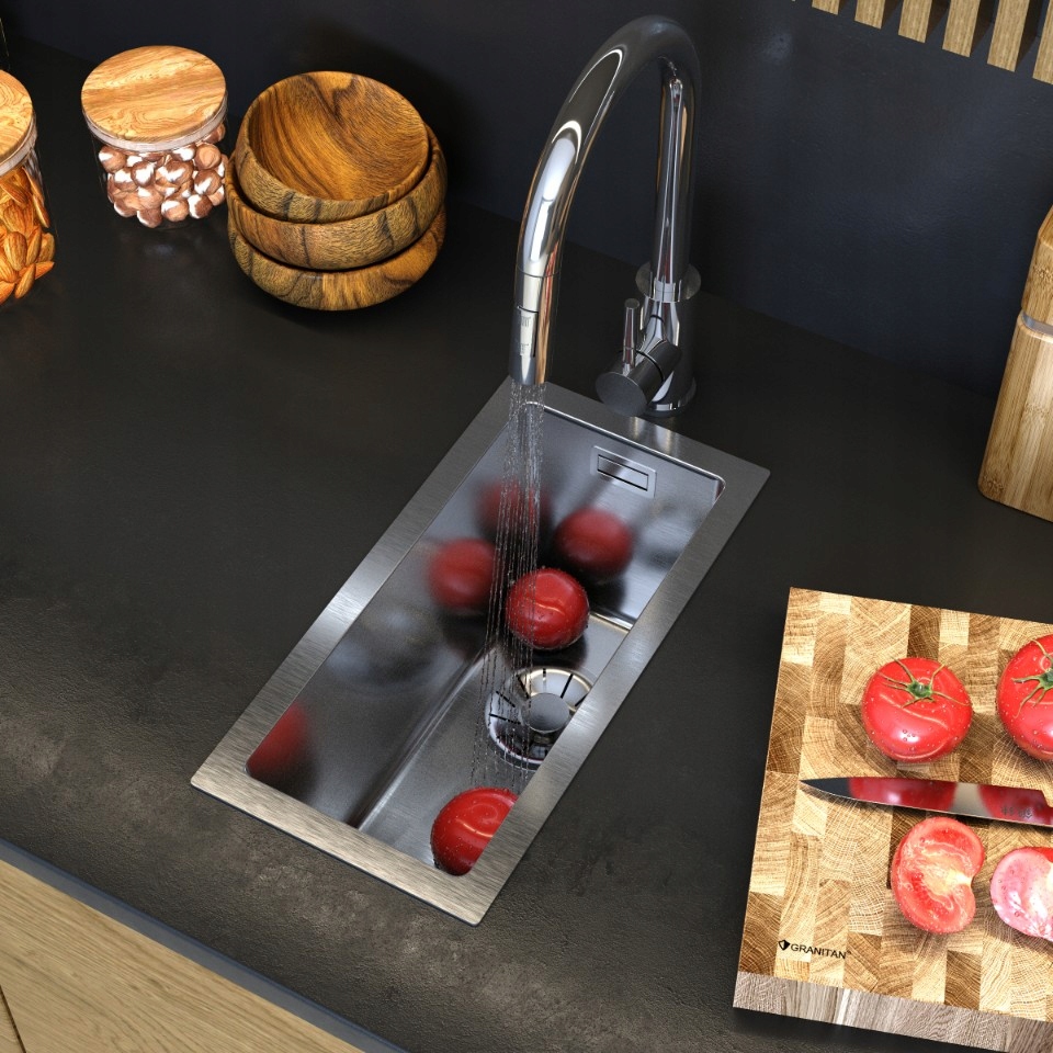 Chiuvetă dreptunghiulară cu o singură cuvă cu opțiuni alternative de montaj – încastrată sau pe blat.