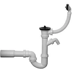 Sifon manual de tip „space saver” – economisitor de spațiu, de culoare cromată, cu posibilitatea de conectare la mașina de spălat vase sau mașina de spălat rufe. O soluție excelentă pentru bucătărie.