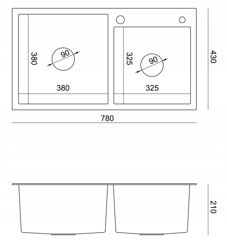 SIFON MANUAL CU DOUĂ CUVE ȘI COȘULEȚE PENTRU DEȘEURI