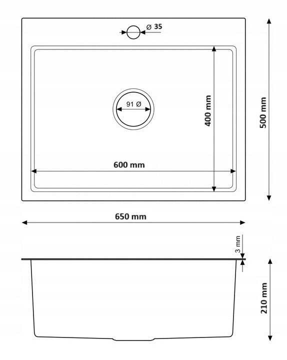 Chiuvetă din oțel inoxidabil cu o singură cameră conceput pentru montare pe blat. Chiuveta are două orificii (acoperite cu un capac estetic în culoarea chiuvetei) pentru robinetul de bucătărie și dozatorul de lichid.