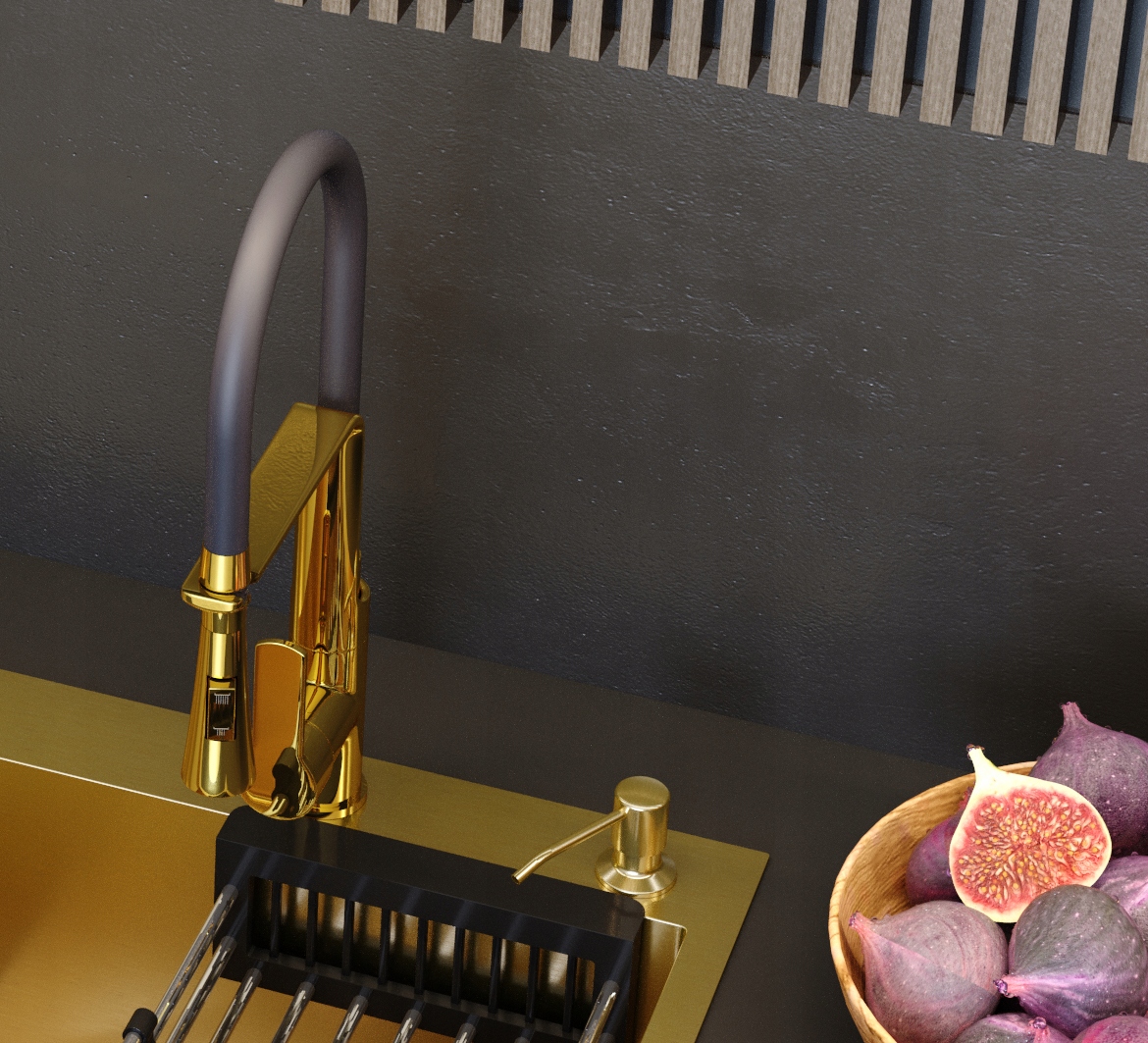 CHIUVETĂ DIN OȚEL INOXIDABIL CU O SINGURĂ CAMERĂ COȘ AURIU SCURGĂTOR DOZATOR BARI65