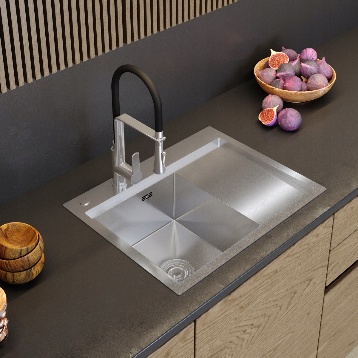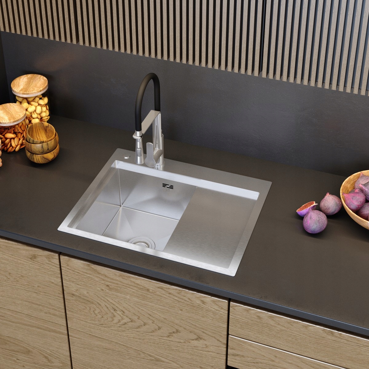 Chiuvetă cu o singură cuvă și scurgător realizată din oțel inoxidabil extrem de durabil și funcțional. Forma sa clasică a fostîmbunătățită cu un scurgător lateral, care crește confortul utilizării bucătăriei și facilitează sarcinile zilnice. Design-ul minimalist și forma simplă permit integrarea aspectului chiuvetei cu numeroase stiluri de amenajări interioare, ceea ce o face un produs extrem de versatil.