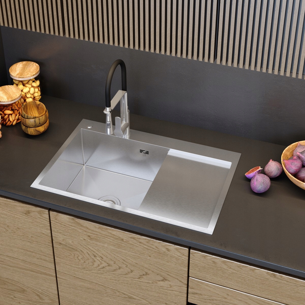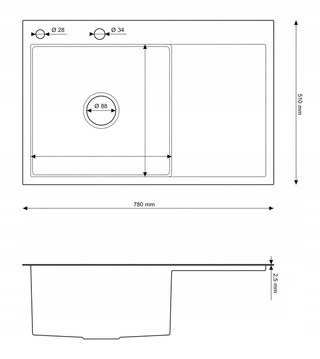 Chiuvetă cu o singură cupă, a cărei formă clasică este completată de un scurgător lateral extrem de funcțional. Acesta facilitează activitățile zilnice în bucătărie și îmbunătățește confortul în timpul spălării. Modelul este realizat din oțel inoxidabil durabil, care împreună cu designul minimalist creează un produs compatibil cu numeroase stiluri de design interior.