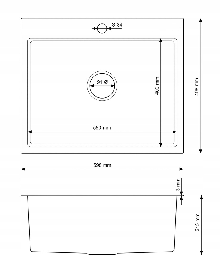 Chiuvetă din oțel inoxidabil cu o singură cuvă proiectată pentru montaj pe blat. Chiuveta are un singur orificiu (acoperit cu un capac estetic în culoarea chiuvetei) destinat pentru bateria de bucătărie.