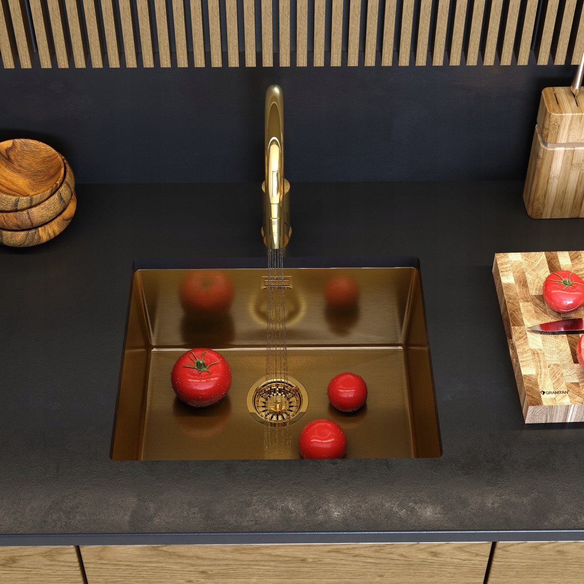CHIUVETĂ DE BUCĂTĂRIE INCORPORABILĂ DIN OȚEL INOXIDABIL, O CUVA, AURIE, SILVO54, CU SIFON