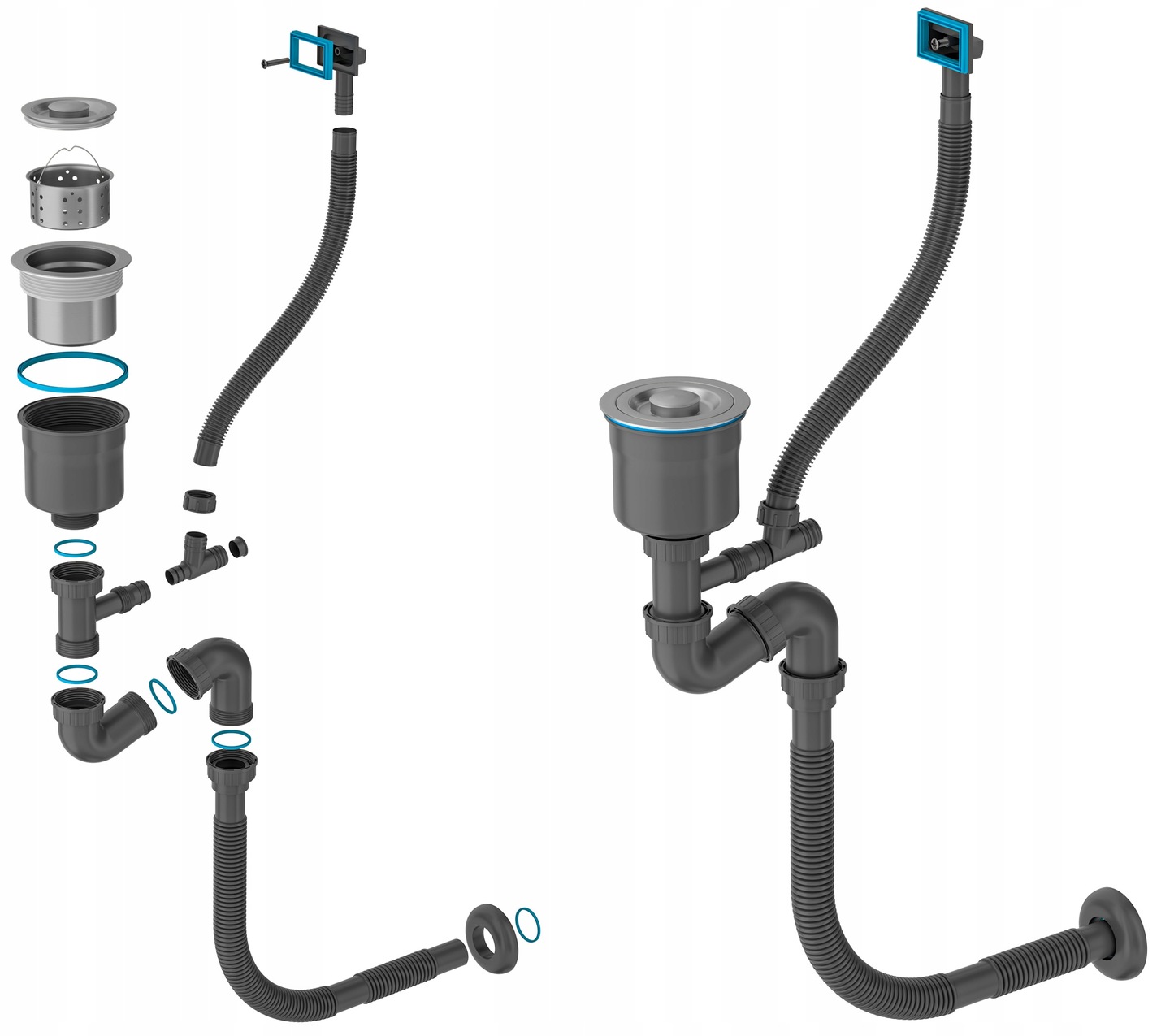 SIFON MANUAL CU COȘULEȚE PENTRU DEȘEURI