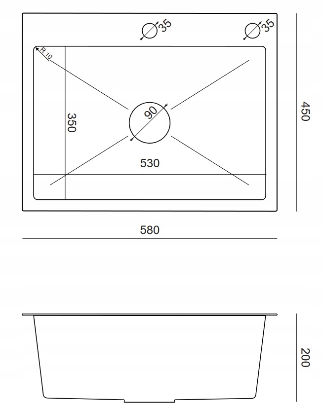 Modelul ASPE58 este o chiuvetă metalică cu o singură cameră proiectată pentru montaj deasupra blatului. Chiuveta dispune de două găuri – una pentru bateria de bucătărie și alta pentru dispenserul de lichid.