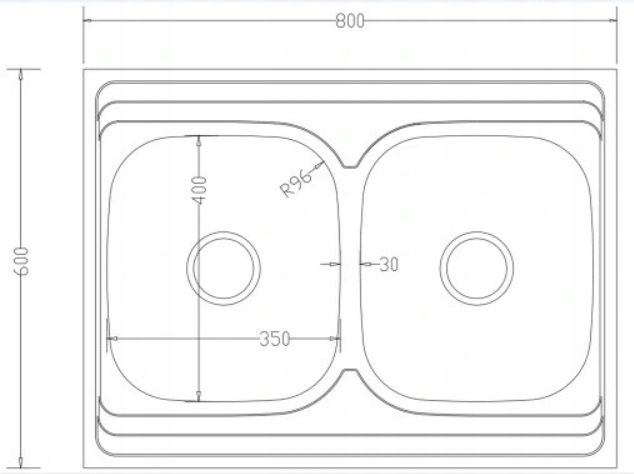 - Sifon cu două cuve, în culoarea CROM (fără conexiune la mașina de spălat/mașina de spălat vase)