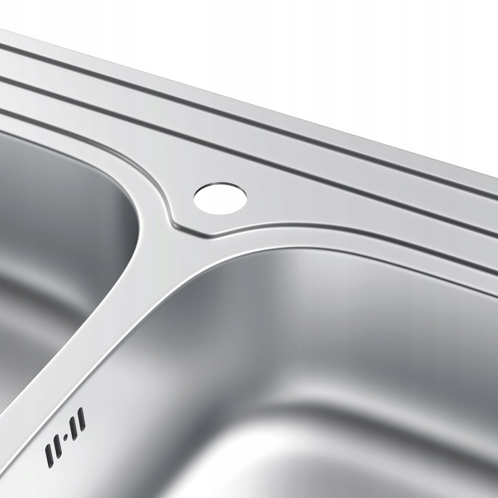 Elegantă și practică chiuvetă cu două cuve realizată din oțel inoxidabil, perfectă pentru orice bucătărie. Datorită metodei de montare aplicată, este ușor de instalat și se potrivește perfect pe blatul bucătăriei. Finisajul cu textură subtilă microtextură asemănătoare cu pânza de in este nu doar elegant, ci și extrem de practic – previne vizibilitatea urmelor de apă, facilitând întreținerea curățeniei. Microtextura conferă chiuvetei rezistență la zgârieturi, menținându-și aspectul de nou pentru mai mult timp.