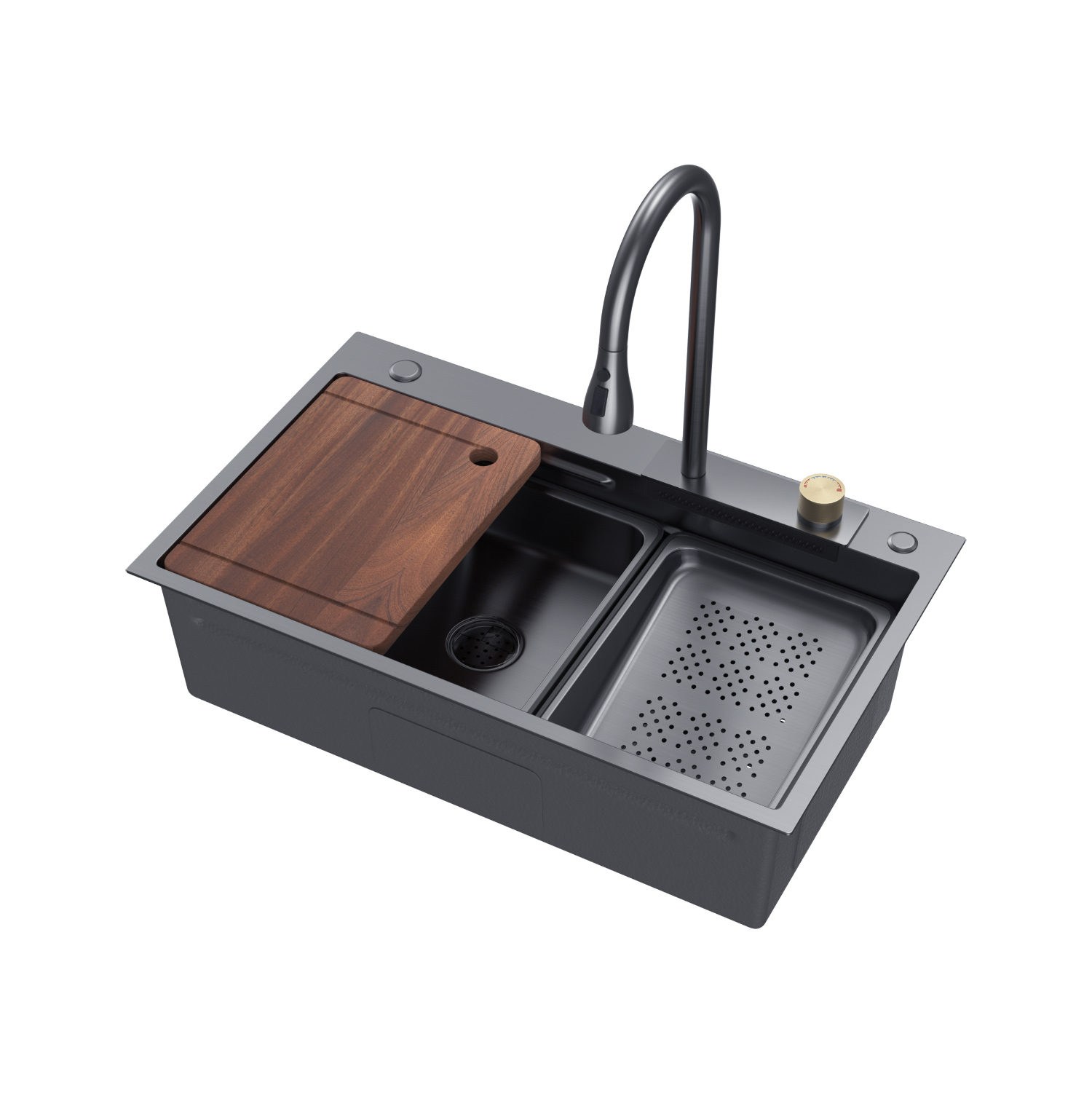 Chiuvetă din oțel gun grey cu baterie cascadă TOKA tiktok