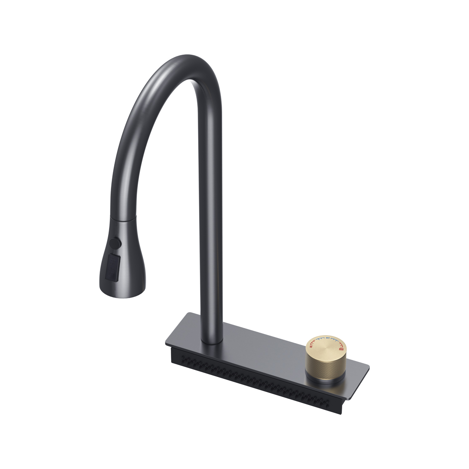 BATERIE DE BUCĂTĂRIE CU PIPETĂ EXTENSIBILĂ ȘI BATERIE TIP CASCADĂ NEAGRĂ