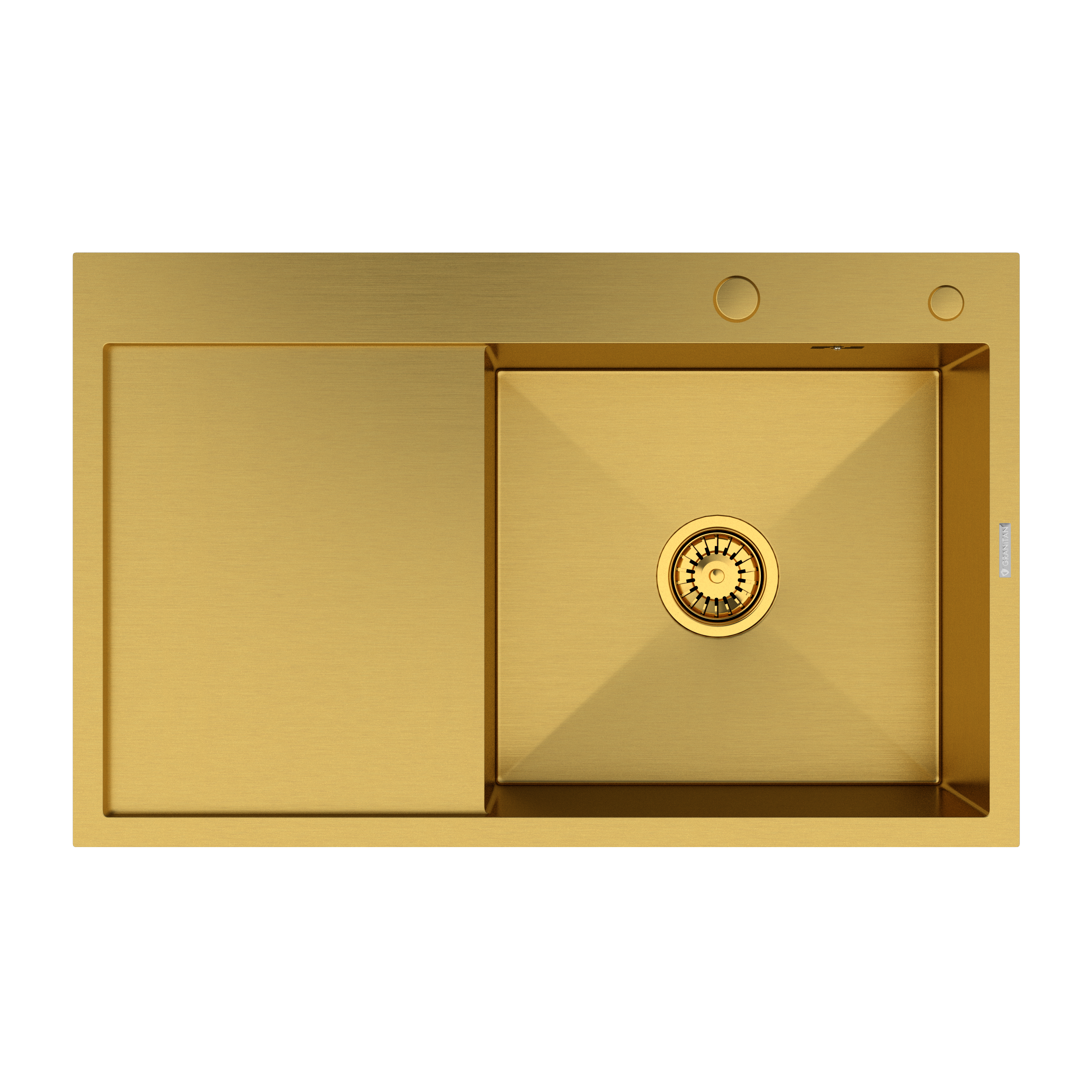 Chiuvetă cu o singură cuvă și picurător destinată pentru montare deasupra blatului. Chiuveta include două orificii (acoperite cu un capac estetic în culoarea chiuvetei) pentru montarea bateriei de bucătărie și a dozatorului de lichid.
