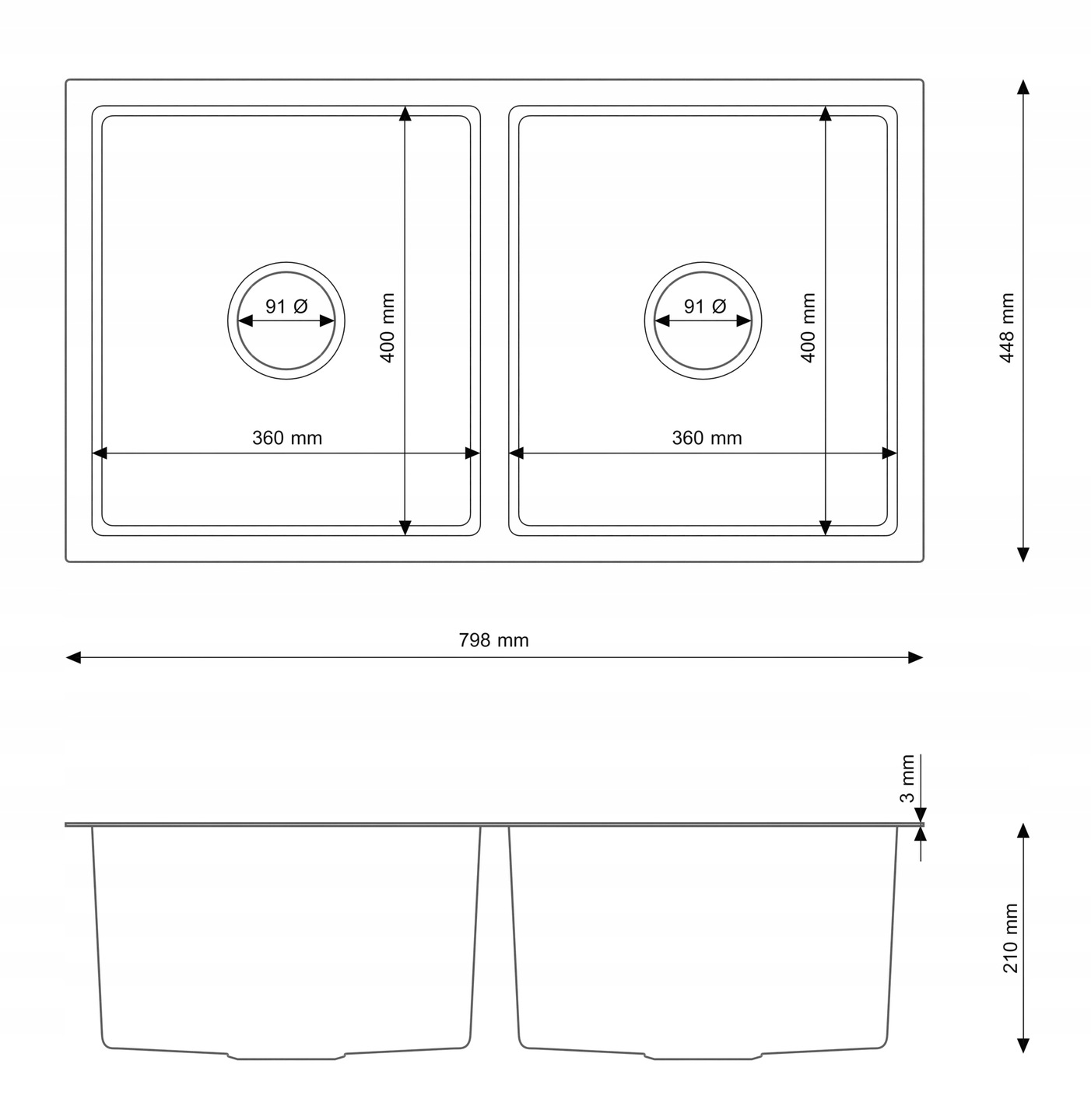 Chiuvetă dublă cu posibilitate de montaj alternativ – suspendată sau pe blat.
