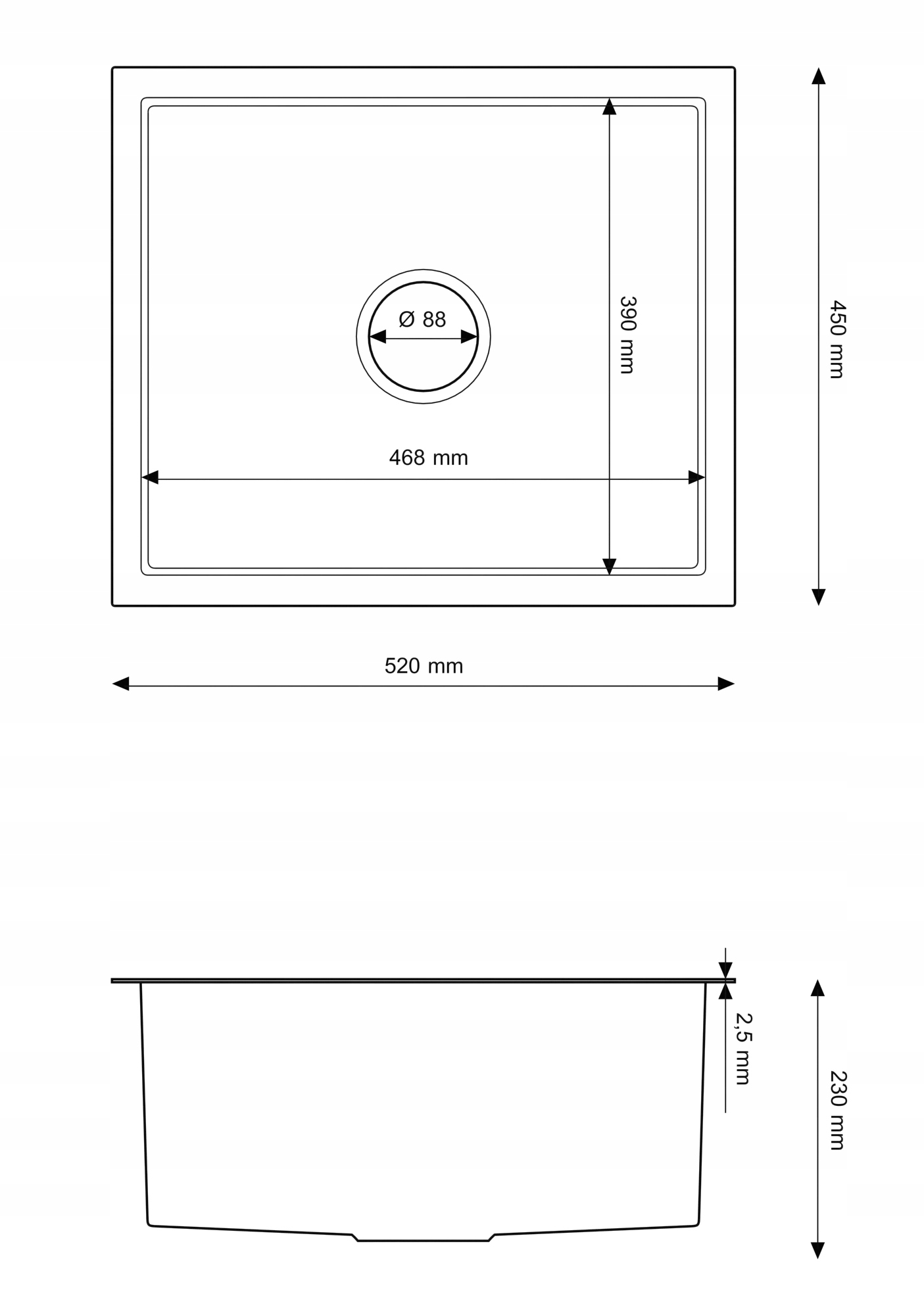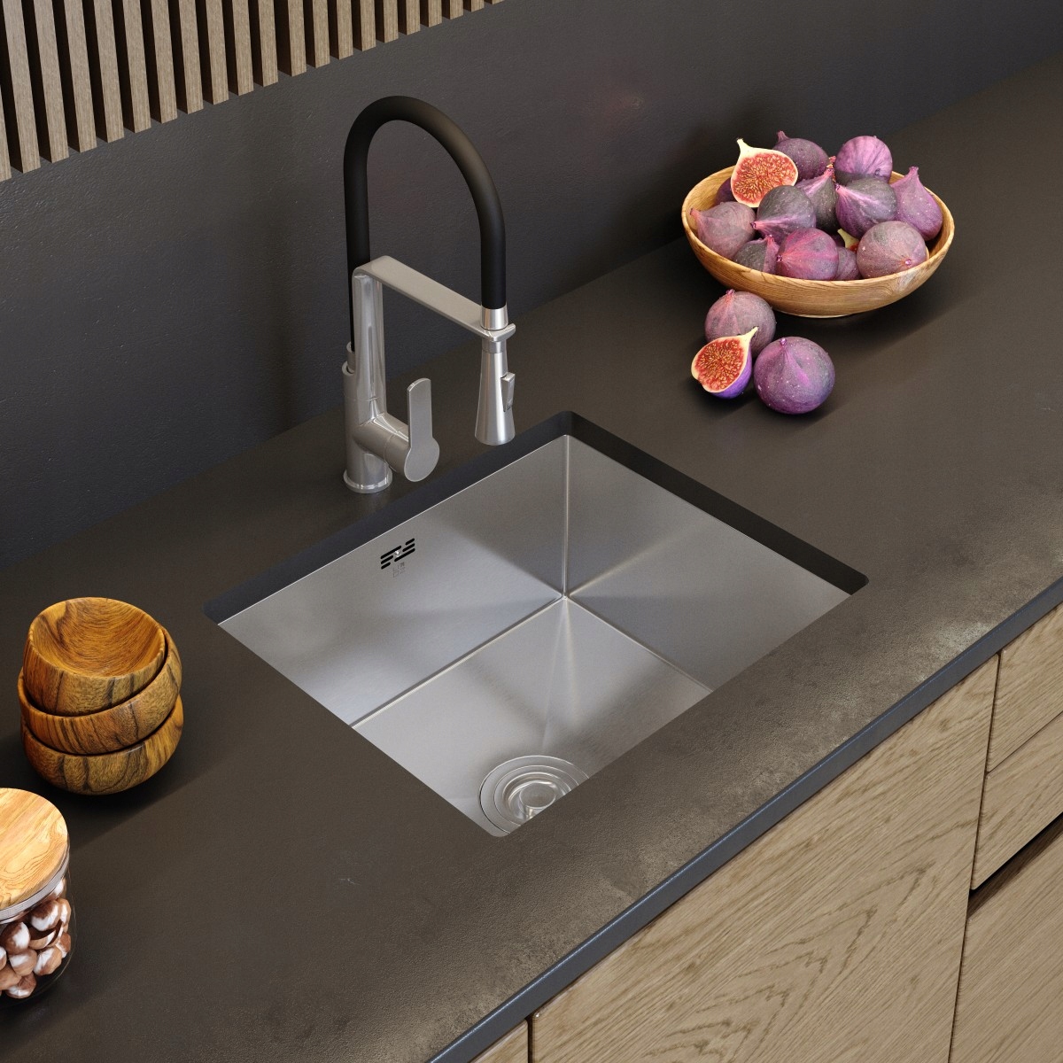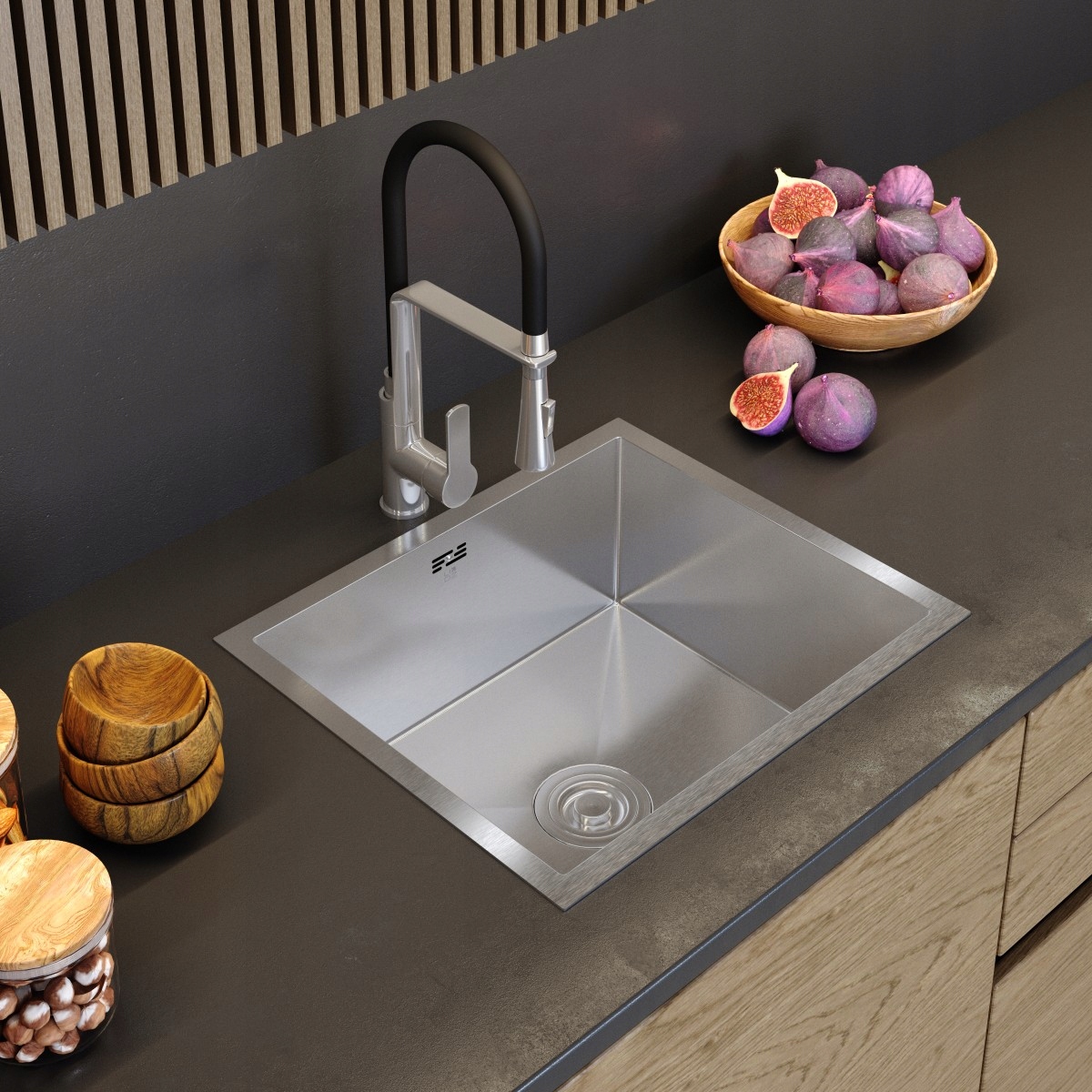 Chiuvetă cu o singură cuvă cu posibilitate de instalare dublă – deasupra blatului sau submontată. Model realizat din oțel inoxidabil de înaltă calitate, care se remarcă prin durabilitate și funcționalitate. Produsul combină forma geometrică cu minimalismul, fiind astfel ideal atât pentru interioare tradiționale, cât și pentru bucătării moderne.