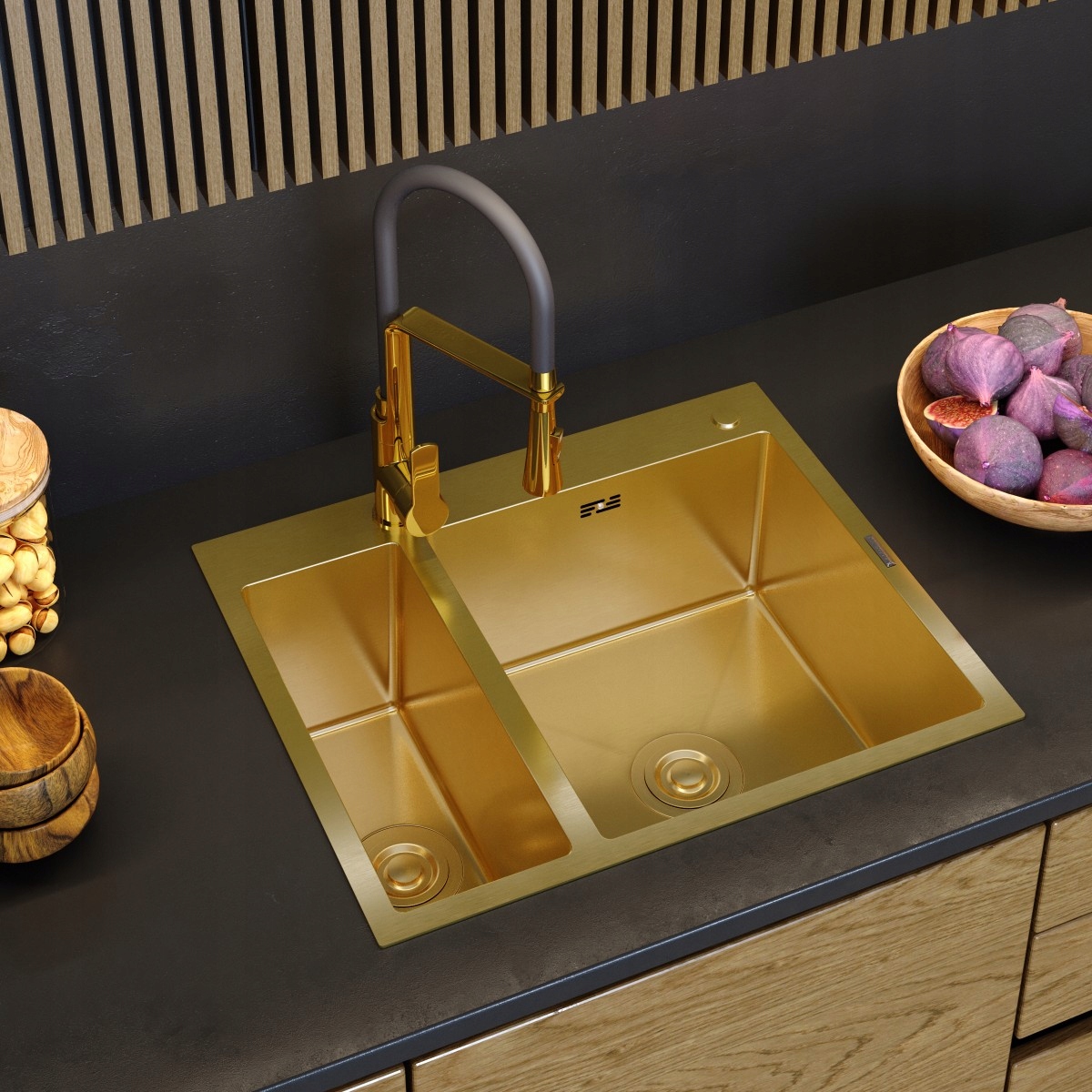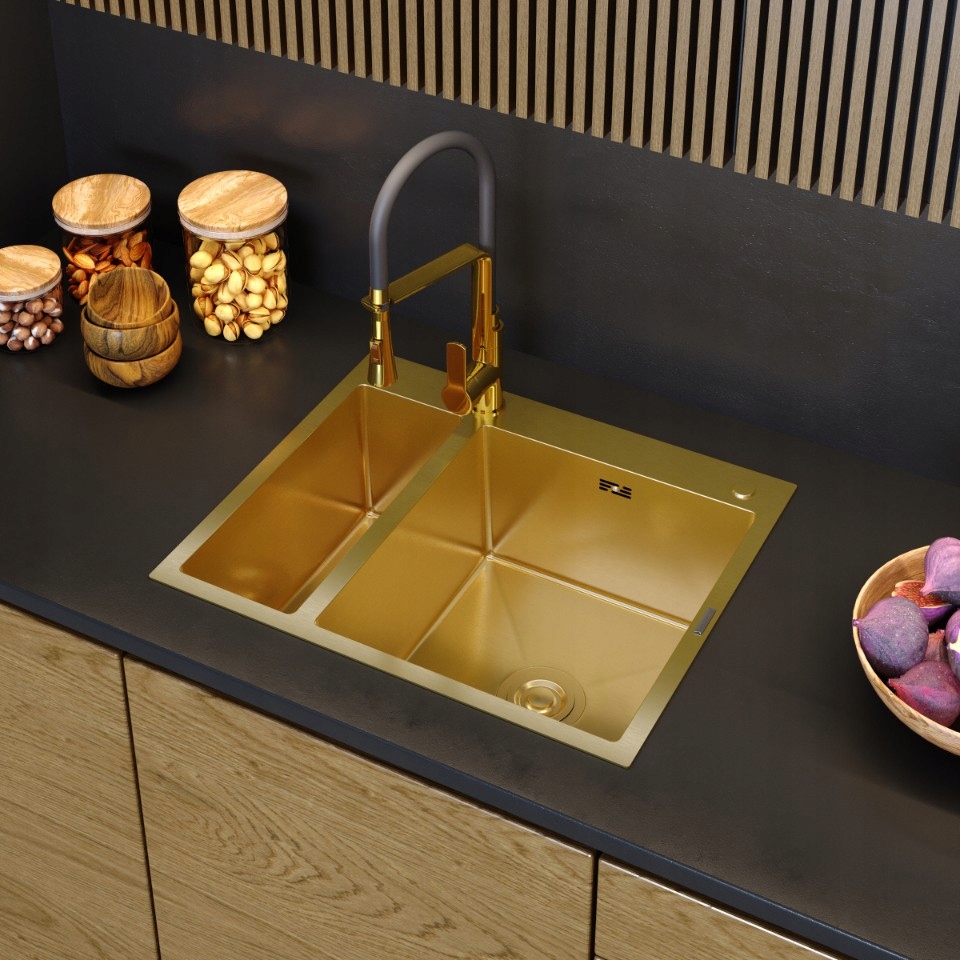 CHIUVETĂ DE BUCĂTĂRIE DIN OȚEL 1,5 CUVE AURIE SIFON SCURGĂTOR DOZATOR BARI61