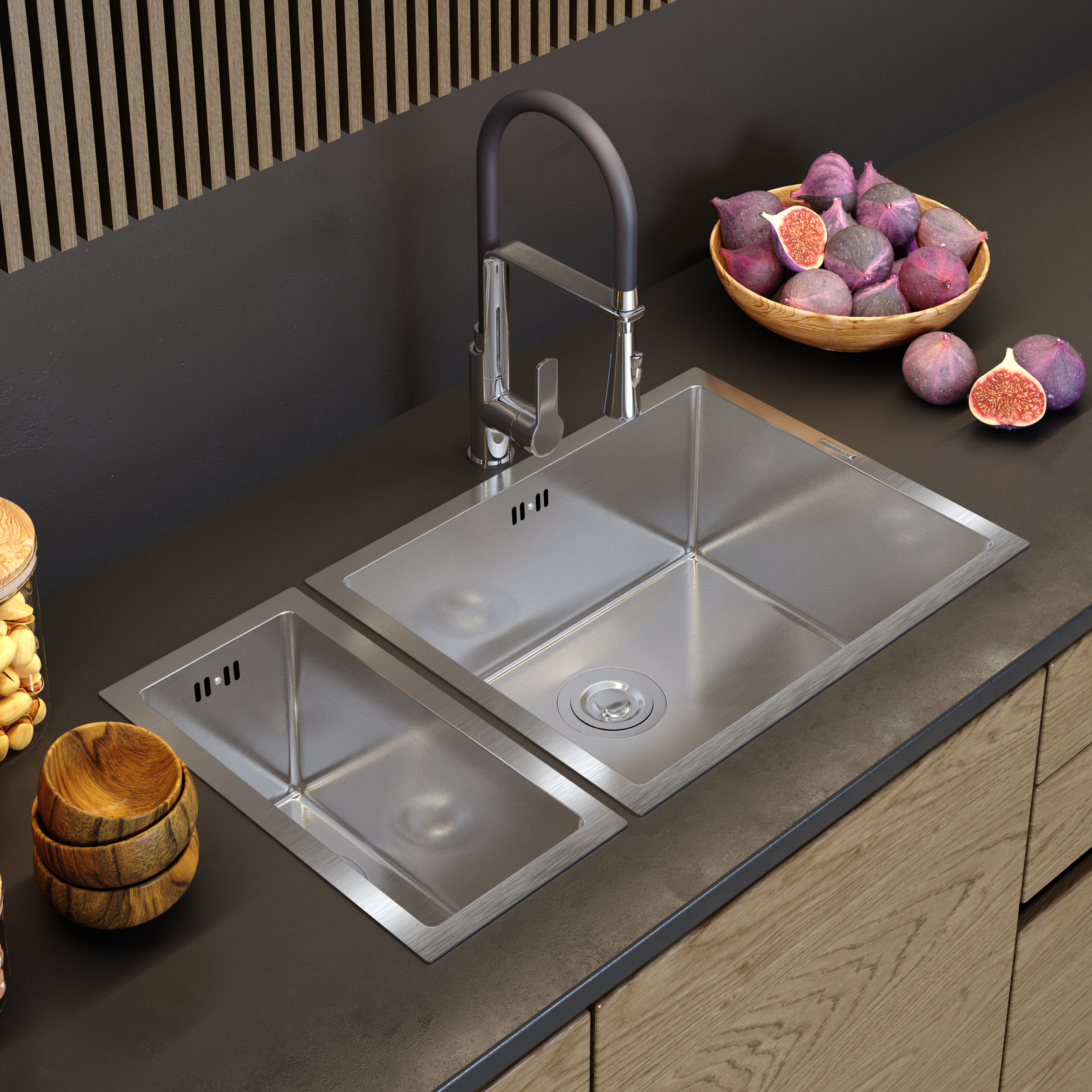 Creează un proiect personalizat – montează chiuveta mică pe partea dreaptă sau stângă.