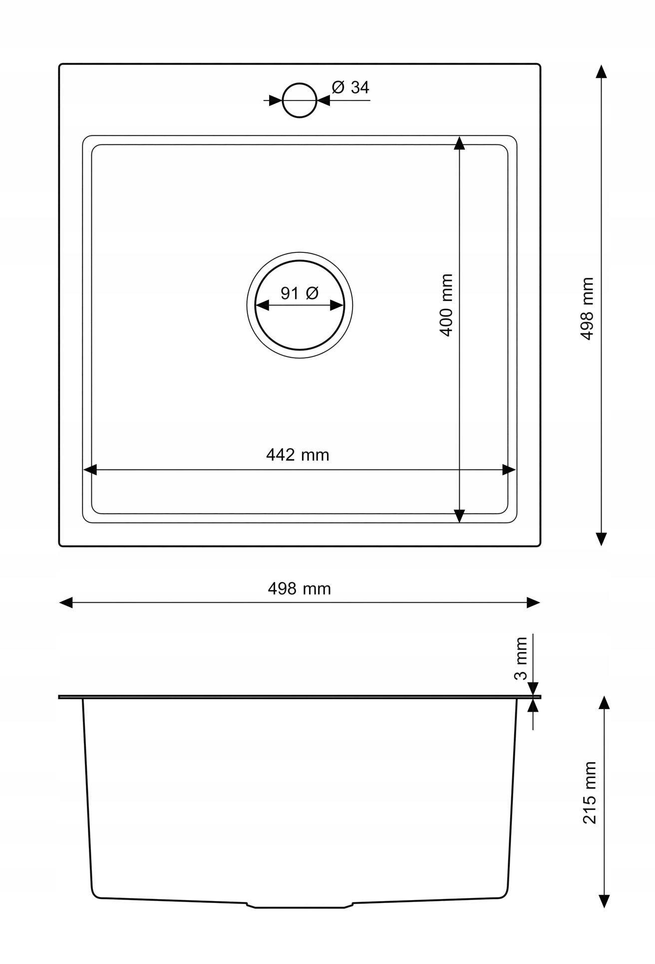 Chiuvetă pătrată din oțel inoxidabil, cu o singură cameră proiectată pentru montaj pe blat.