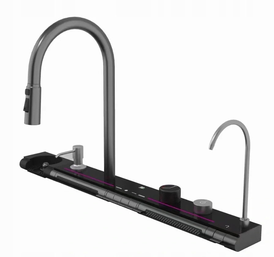 Bateria de bucătărie cu pipă tip cascadă este un design modern și spectaculos care adaugă personalitate și scoate în evidență aspectul elegant al oricărei bucătării. Pipa tip cascadă este proiectată astfel încât apa să curgă ca o cascadă mică – creând un efect vizual unic.