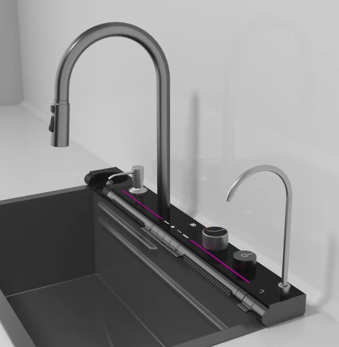 CHIUVETĂ DIN OȚEL NEGRU BATERIE CASCADĂ SPĂLĂTOR COȘ DISPENSER SET ORIS