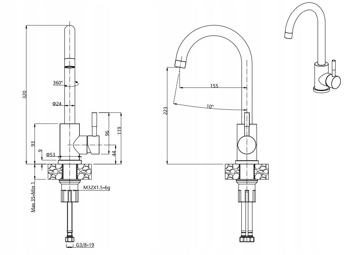 Înălțime totală: 320 mm