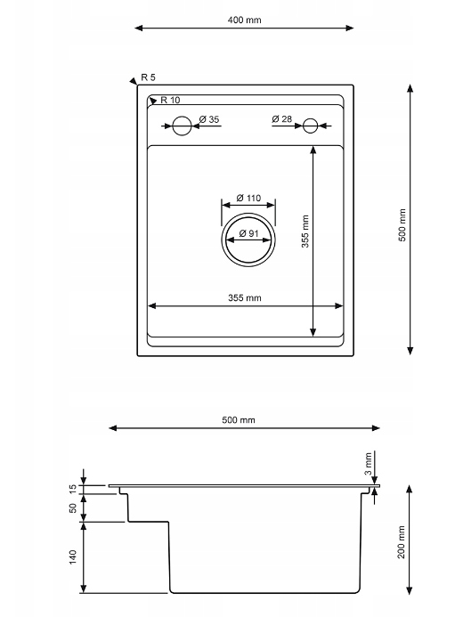 Orificiu pentru robinet: 35 mm