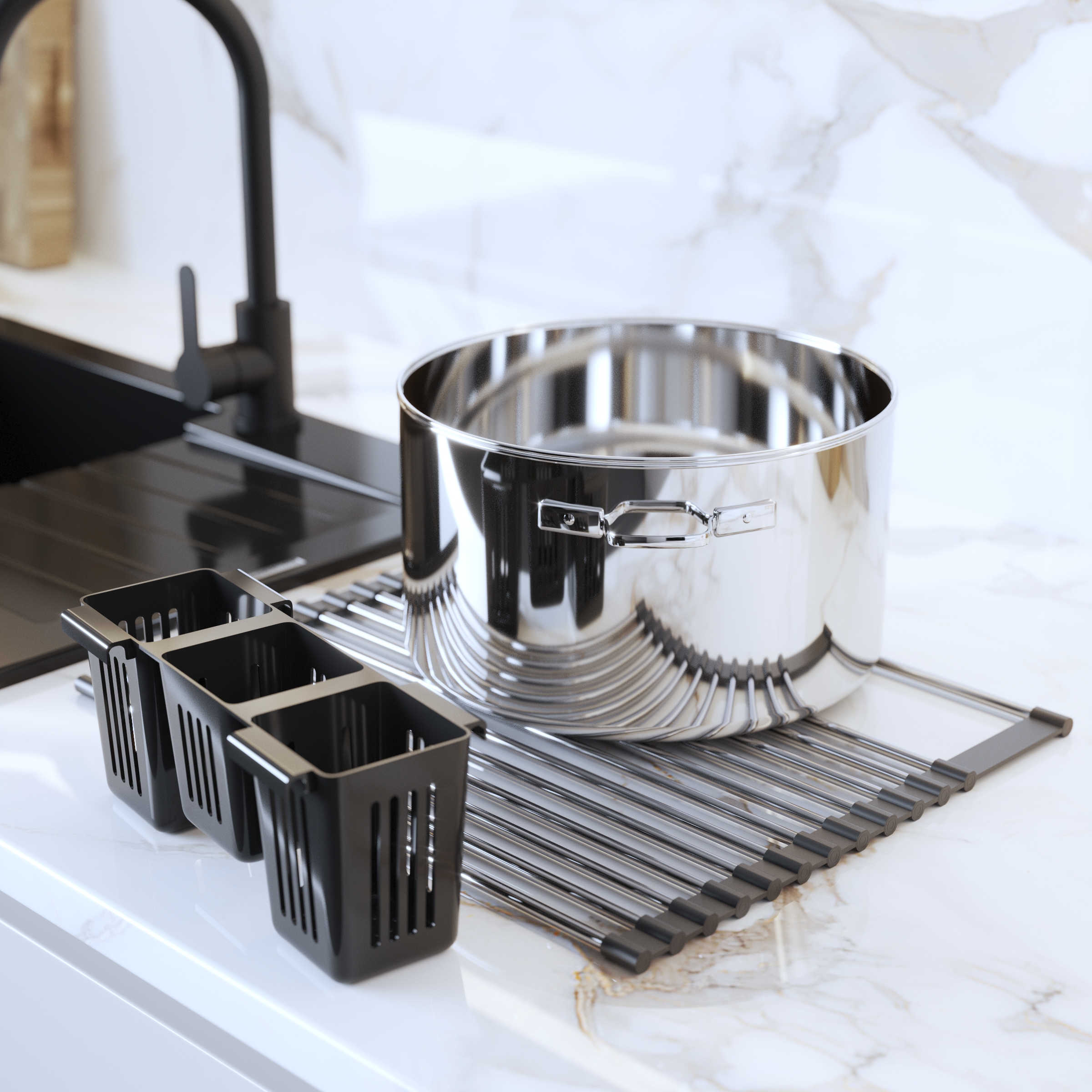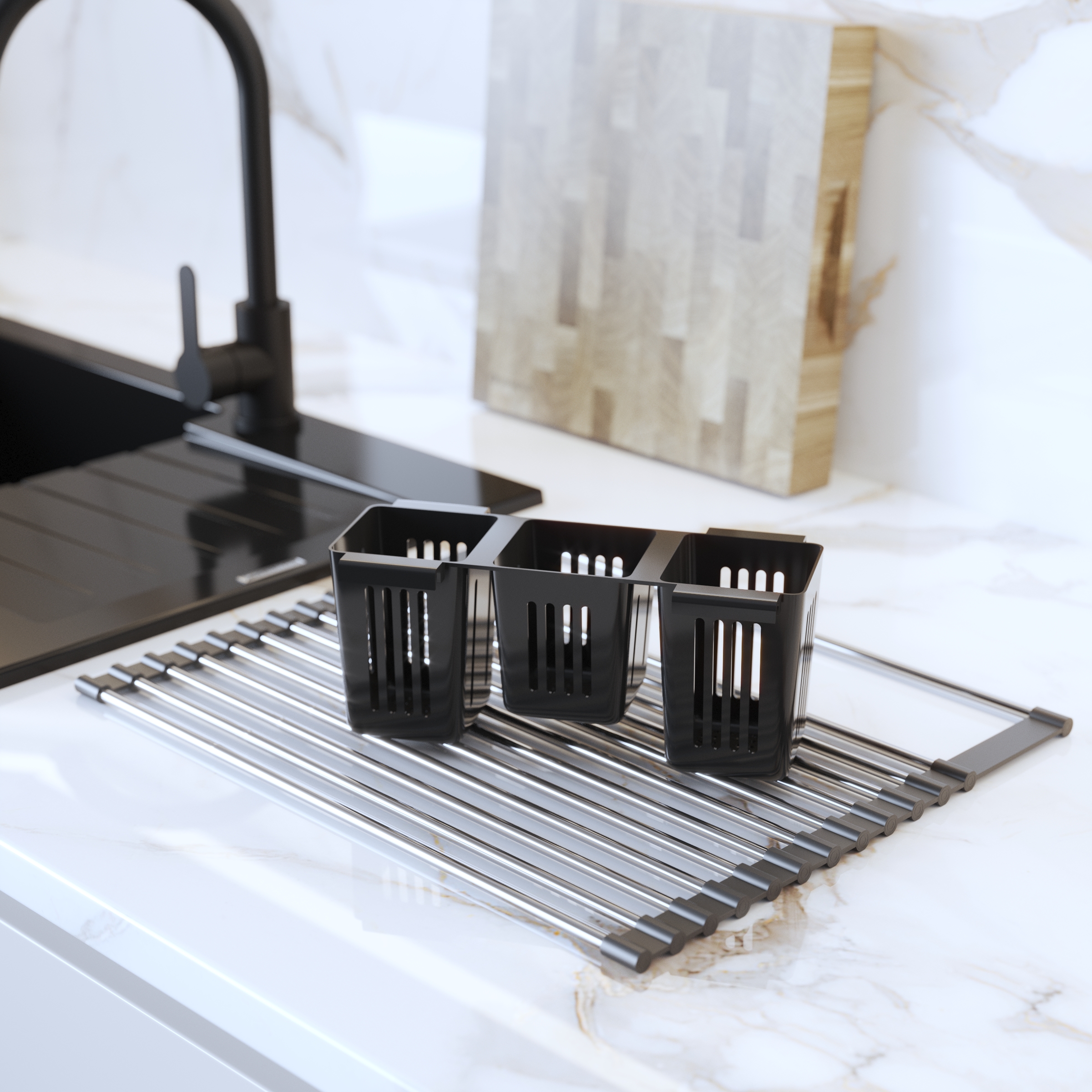 Descoperă uscătorul nostru multifuncțional rulat pentru chiuvetă – sinonimul modernității, economiei de spațiu și funcționalității maxime. Nu este un simplu uscător – este un organizator de bucătărie inovator, perfect adaptat nevoilor tale.