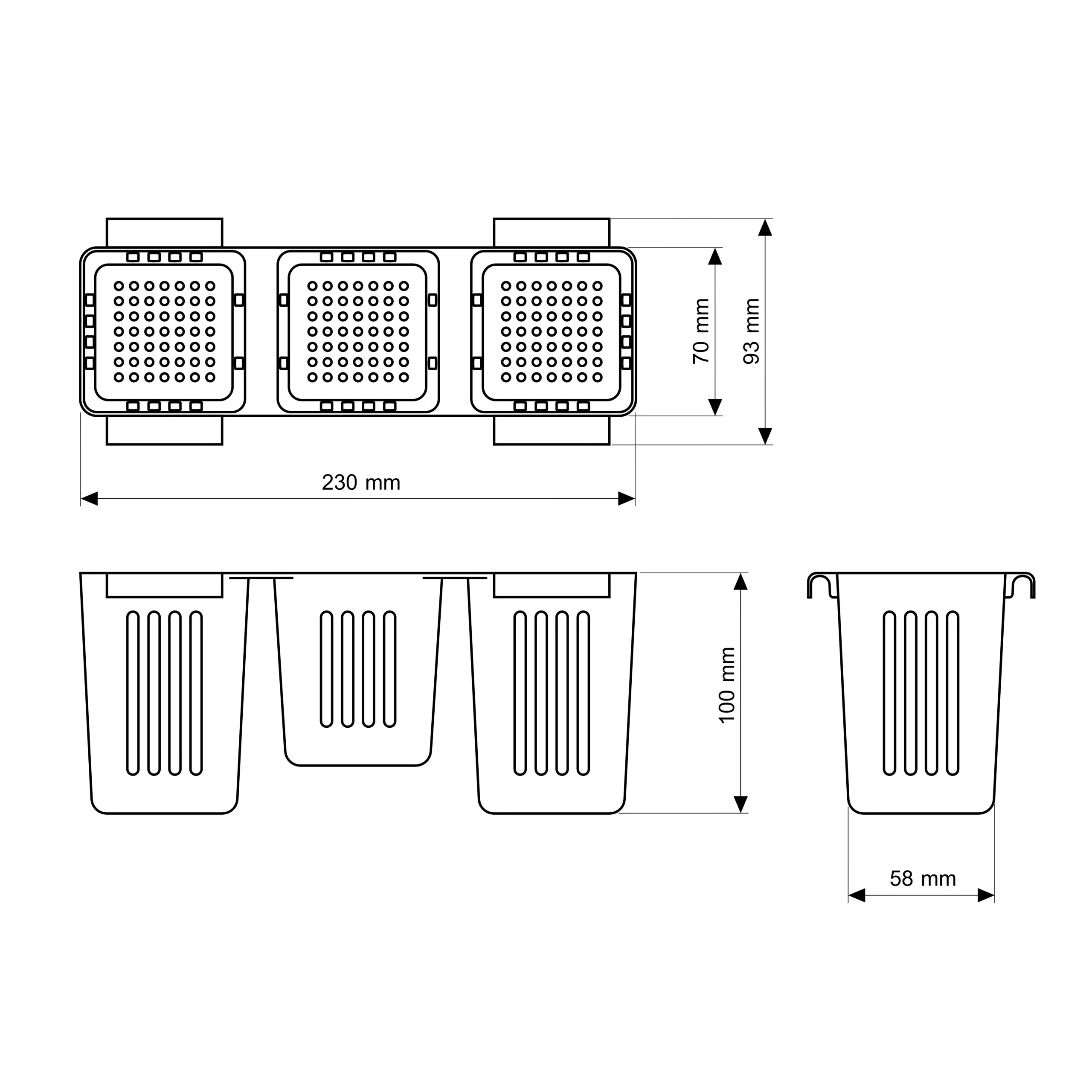• Dimensiunile setului complet de coșuri: 230 mm (lungime totală)